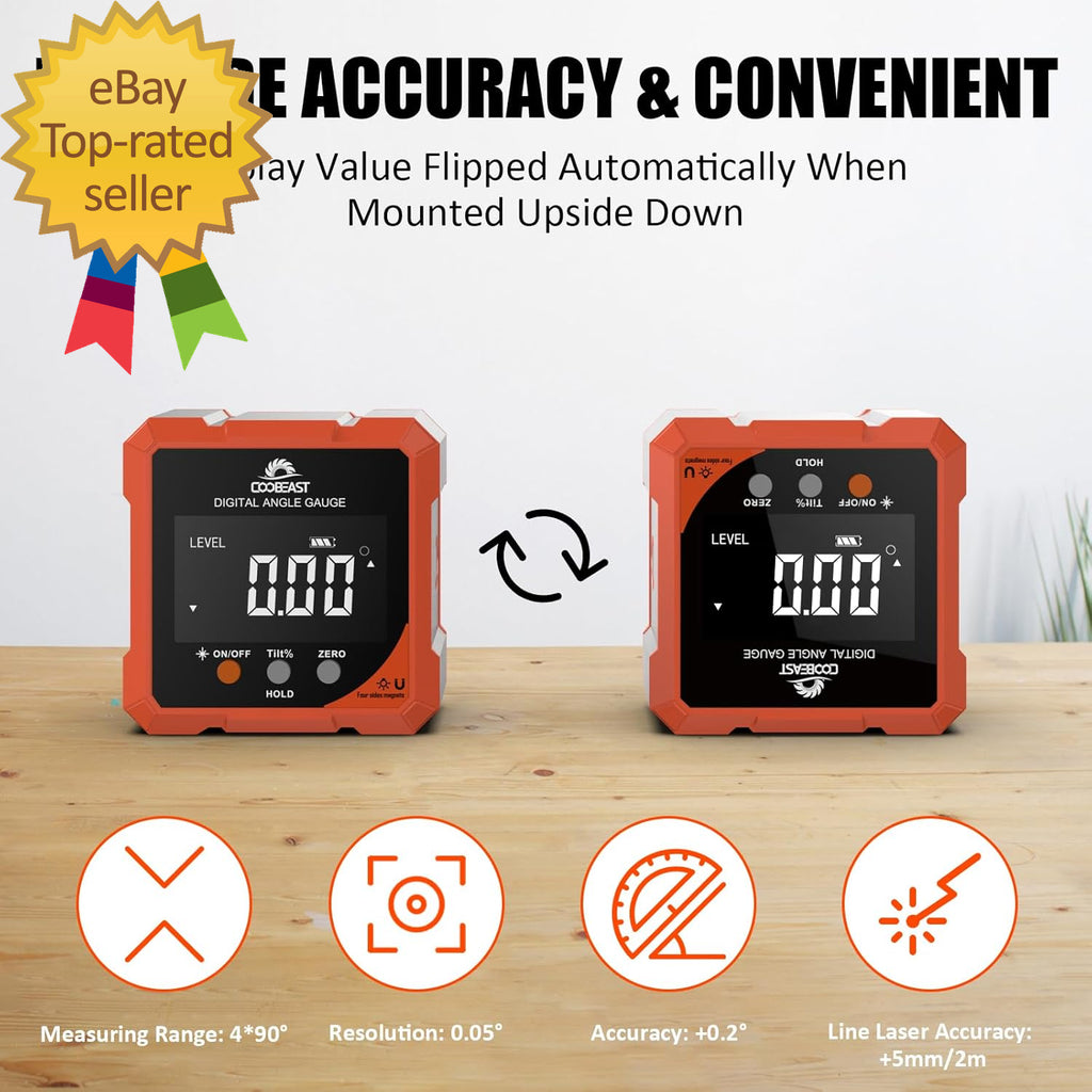 • PROVIDE ACCURACY & CONVENIENT — 360°/4×90° measure angle, the measured value on the display is automatically adjusted. The hold button can memorize the measured values is convenient for taking measurements in narrow spaces, inverted situations, and curved pipes. Display value flipped automatically when mounted upside down, with ±0.2° accuracy and 0.05° resolution to ensure accurate measurement every time.